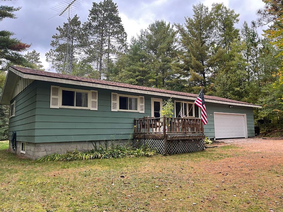 Great starter or rental property! 3 bedroom, 2 bath ranch style home with 2 car attached garage. This cozy Northwoods home offers a pine tongue and groove interior, open concept kitchen and dining, large windows in the living room and a partially finished basement with unlimited possibilities. Back deck for lazy day relaxation, dog kennel for the fur friends and large backyard for outdoor entertaining. Centrally located between Eagle River and St Germain, snowmobile & ATV trails nearby, as well as many area lakes. New 3 bedrooms septic installed in June 2021. Great home with great potential. Current sellers are sad to leave, but it's a must. Take a peek NOW and begin enjoying what these sellers love about the home. Become part of the beautiful Northwoods!
