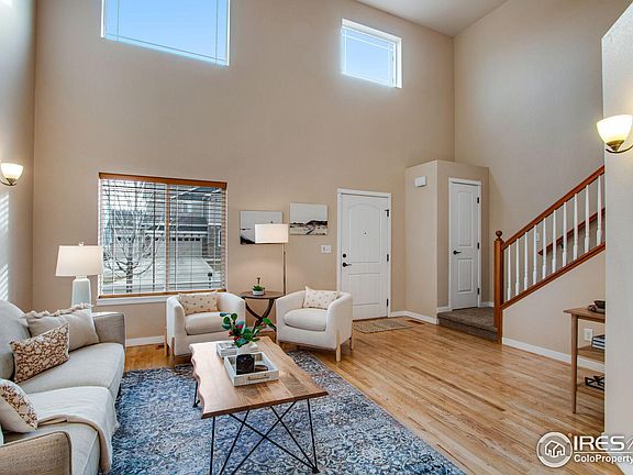 Mountain views from cozy front porch & primary bed! Spacious living room w/soaring ceilings, kitchen w/granite counters/stainless steel appliances/eat-in area plus breakfast bar. Fresh sod in fully fenced yard w/irrigation water paid through HOA. All beds & laundry upstairs together. Room to expand in full unfinished basement w/rough-in. Enjoy everything Berthoud has to offer from amazing schools, to charming downtown, to the brand-new rec center; all within a few blocks of this amazing home!