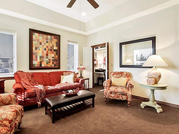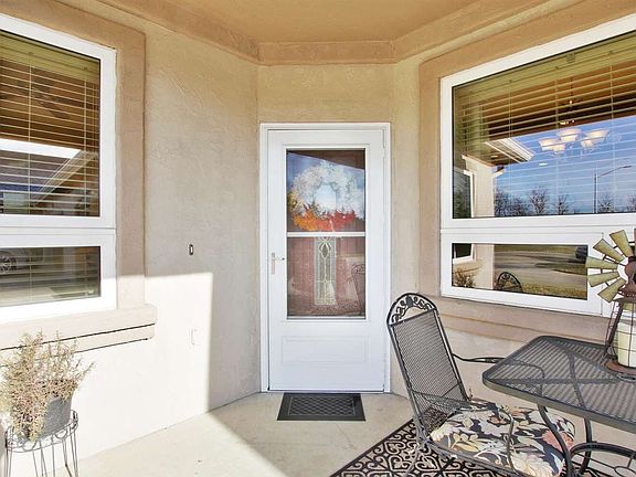 This 9-year-old, 2BR/2BA home with a 2-car garage offers everything the senior buyer is looking for - a comfortable floor plan, large kitchen, luxury master bedroom/bath, and beautiful finishes throughout. The living room has a multipurpose closet, currently used as a functional office space. The fully-applianced kitchen includes a pantry, eating bar, under cabinet lighting, and dining area. The master suite has a large closet and a private bath with walk-in shower. The remainder of the floor plan includes a second bedroom with a closet that doubles as a storm shelter, a full hallway bath, and convenient laundry space off the kitchen. This zero-step entry home is handicap accessible and was built with insulated concrete form construction and high efficiency HVAC and windows. It is also plumbed for heated floors. Enjoy the comfortable porch and quick access to the neighborhood commons area with pond and walking paths. HOA dues cover exterior maintenance and insurance, mowing and irrigation, snow removal, and commons area upkeep. This home is extremely well-maintained and move-in-ready; it's your chance to downsize in style.