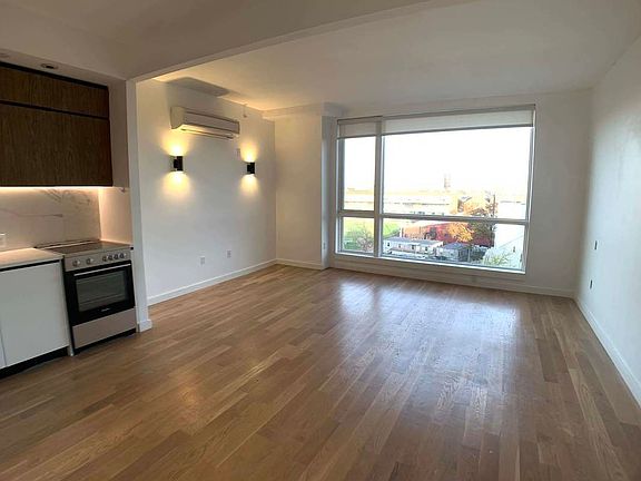 NETT EFFECTIVE RENT Stunning large luxury studio apartment available across the street from Brooklyn College! This apartment includes oversized floor-to-ceiling, double-pane windows, central AC and heat, hardwood flooring, beautiful kitchen with stainless steel appliances, and a dishwasher. Building features: - Laundry Room - Residence lounge - Gym - Paid Parking - Package Room - Elevator - Study Room - Rooftop Deck - Bike Room - Pets Allowed