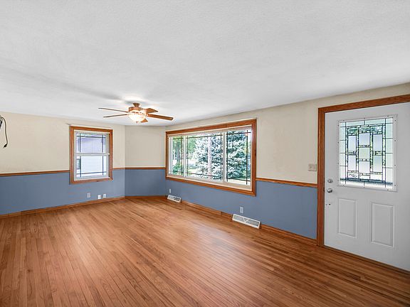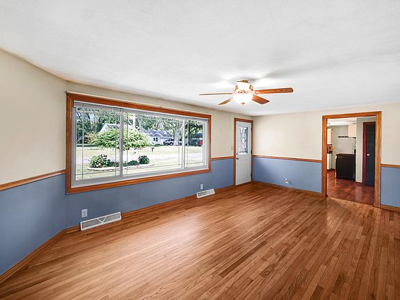 Solid well maintained all brick ranch offers 3-4 bedrooms, 1 and 3/4 baths, eat in sized kitchen with all appliances & updated LVP flooring, spacious living room with hardwood flooring, windows were replaced in 2017 and come with transferable warranty, new furnace and central air in 2023, Roof as replaced in 2016, Full bath was remodeled in 2016, 3 bedrooms with hard wood floors on the main floor, basement is mostly finished with a 4th bedroom(no egress but 3 daylight windows in basement) large family room with rec room space, laundry(washer/dryer remain) and utility room and a 3/4 bathroom. Generous 2 car attached garage leads out to completely fenced LARGE back yard with a concrete patio, and an above ground pool. Plenty of room to build a shed and for gardening and more! New Prairie School District