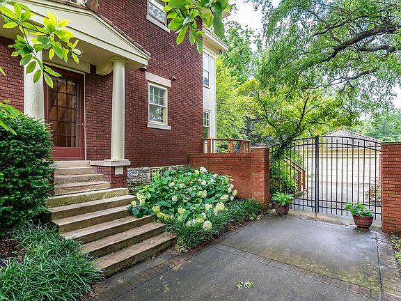 A special opportunity. Classic four square in desirable Ashland Park is ready for the twelfth owner. Pull in the circular drive and step on to the spacious, inviting front porch with swing. Enter in to the formal living room and you are immediately greeted by the first of four fireplaces. To your left, you'll find the light filled dining room which opens to the den. The staircase is in the center hallway and offers a side entrance. The kitchen is at the back of the home and offers a center island, breakfast area, half bath, and access to the spacious deck. The second floor primary suite offers dual walk-in closets, sitting room and en suite bath with shower and tub. Two additional bedrooms are on this floor that share a jack and Jill full bath. The third floor offers an abundance of space and was used as a bedroom and bonus room, and has another a full bath. The lower level has a home office (which was used as the fifth bedroom), full bath, kitchen, living area and utility room. You'll love the spacious deck in the private, fenced backyard overlooking the koi ponds and two car detached garage.