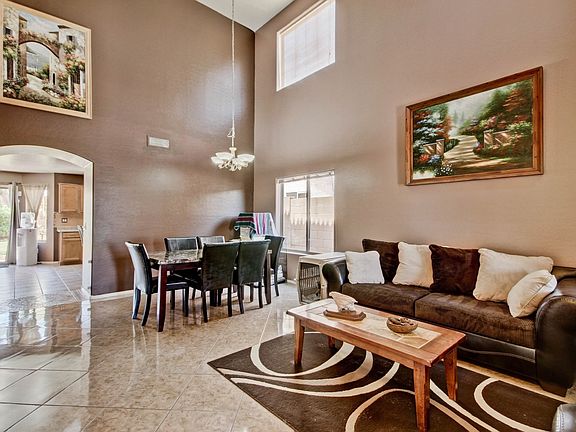 BEAUTIFUL 5 BEDROOM 3 BATH HOME! Open formal living and dining area with soaring ceilings. Large open kitchen with center island, step in pantry, custom back splash, built in microwave, loads of cabinets with eat in kitchen and easy view of the TV in the family room. Full bath and bedroom downstairs. Upstairs includes 3 more bedrooms and the large master. Remodeled shower is dreamy and garden tub for relaxing. Walk in closet. Large tile in all the right places. Grass backyard with flagstone patio. Sunscreens and ceiling fans to help keep the costs down too!