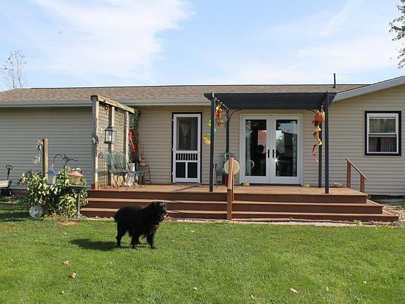 Move right in to this desirable 3 bedroom 2 bath ranch home just outside of town. Open concept kitchen and dining area. Fenced in yard with a 30 x 30 pole barn with a covered porch. Patio doors, new in 2015, lead out to a large deck with a pergola. Many perennials on property to enjoy. New roof in 2012 and many other updates to home.