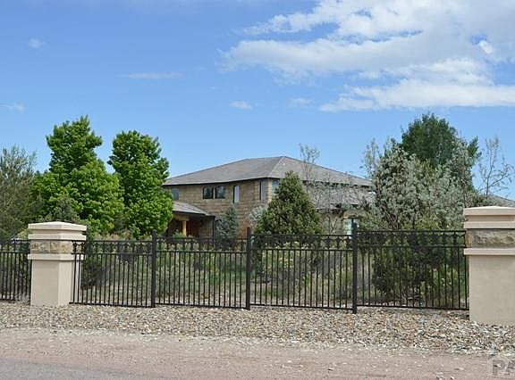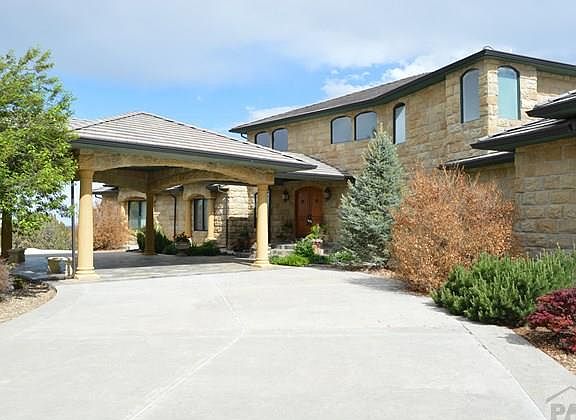 Artisan crafted custom Italian villa surrounded by exquisite views of Lake Pueblo, city & front mountain range from Pikes Peak to Spanish Peaks. Spectacular landscaping with rock fountain. Circular slate driveway with covered portico. Handcrafted rock exterior. Entire perimeter surrounded by wrought iron & column fencing with electronic gates. Grand formal entryway with double staircase & magnificent chandelier. Granite trimmed alder windows & doors. Separate one bedroom guest house with kitchenette and living area Kitchen is designed for the most discriminating with Viking appliances, custom built copper range hood, and mosaic tile artwork. Office area & den on the main level. Upstairs master suite with separate living area, balcony for views, fireplace and gorgeous 5 piece master bath and walk-in closet. Walkout basement features fireplace in game area & video area and full wet bar as well as 4 bedrooms, 2 baths (one a jack & jill). There is a 4 car heated garage + 2 huge workshop/hobby areas. Spacious covered decks; landscaping all on drip or sprinklers. Lighting is all LED. Everything about this property is in pristine condition! A perfect home for entertaining!
