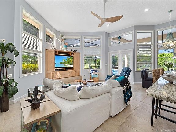 Welcome to your ѕlісe of pаradіse in the guard-gatеd Countrу Club Estates! This 4 bedroom, 2.5 bathroom (including cabana bath) home offers a 2-car garage plus a dedicated golf cart garage. Step outside to your newly resurfaced and tiled screened pool with a covered lanai overlooking the 8th tee box of the PGA Golf Course. Inside, the kitchen features granite countertops, a coffee bar, and a spacious pantry. The owner’s suite offers a large walk-in closet, jetted tub, and sliding glass doors that open directly to the lanai. With its bright and relaxed design, this home radiates a Margaritaville vibe—perfect for entertaining or simply soaking in the good life. Resort-style living, golf course views, and a tropical feel make this home feel like vacation every day!