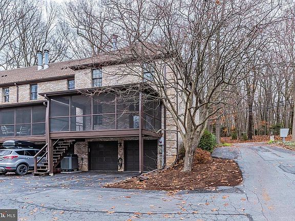Unwind each day from the traffic and noise in this peaceful condo nestled in a cozy wooded setting on top of Sand Hill Road. Beautiful in autumn and all year round, this attractive community mirrors the scene of a small European retreat. The condo has 3 bedrooms, 2 full baths, and 1 half bath with a whopping 1900+ square feet of living space. The nice kitchen has a large serving portal to the formal dining room. The living room is enormous with French doors that lead to a large screened in wooden porch. Upstairs the master bedroom is grand with a 6 x 7 walk-in closet. Two additional bedrooms are nearby with the forward bedroom being long and spacious. Also perfect as an office. The oversized garage has space for 2 cars and there is an additional 2 private and covered parking spaces in before the garage doors, under the porch. The condo association offers full service including landscaping, snow removal, water, sewer, trash, and outside maintenance. No need for water/sewer hook up as it is included by the association. A perfect location just minutes to town and the medical center and located within Derry Township School District.