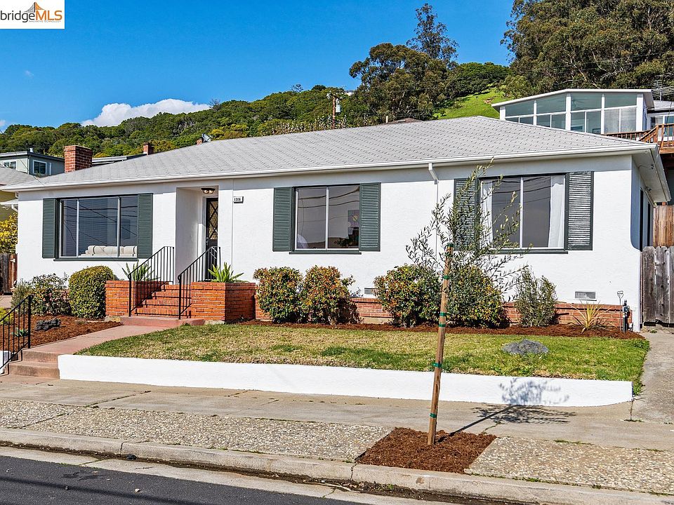 Great 3 bedroom / 2 bathroom home with partial bay views. In the same family since 1955 this home has been well loved and cared for over the years. Large, light living room w/ gorgeous refinished original oak floors and large picture window with partial Golden Gate Bridge & Bay views. The stacked brick wood burning fireplace is the perfect place to gather with friends and family. Dining area off the eat-in kitchen with built-in desk, work center. Kitchen opens out to private, low maintenance backyard. 2 of the 3 bedrooms have peek a boo bay views. 2 full bathrooms and laundry area. Attached garage and off street parking. 2 1/2 blocks to miles of excellent hiking at Memorial Grove, 5 blocks to Cerrito Vista or Castro Parks and The Contra Costa Civic Community Theater. 1.2 miles to El Cerrito Natural Grocery & 1.5 miles to Del Norte BART station. Great neighborhood, very bikeable. Solid, livable house.