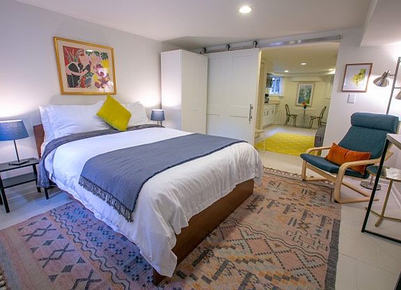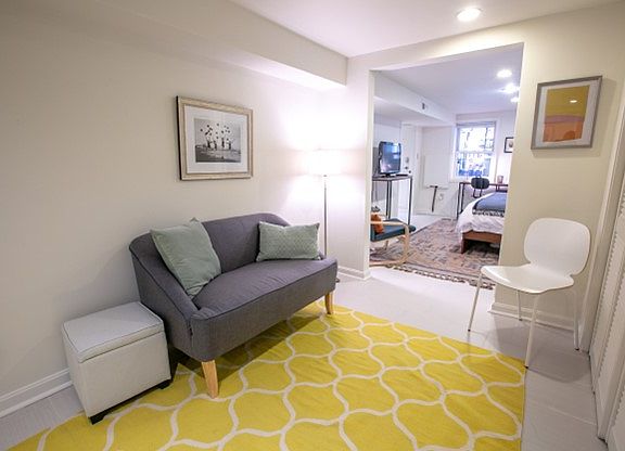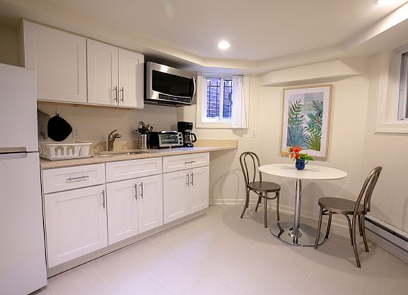Renovated 1 bedroom basement guest suite in Northern Columbia Heights/ Petworth. Located on a quiet street just a 10-minute walk to the metro and steps to restaurants, grocery stores, and other amenities on the 14th St., Georgia Ave., and Upshur Street corridors. The apartment includes a separate bedroom, living room/kitchenette, and full bathroom. It has full-size windows and good light, and the kitchenette has a combination microwave/convection oven. There are two gated entrances to the apartment that are separate from the main house. Laundry room with a washer & dryer is shared with our family (a couple and two kids). The unit can be furnished or unfurnished per renter's preference. Furnishings include queen size bed, tables, chairs, couch, dishware, cooking utensils, and more. Street parking nearby is typically available, often on our block. Prefer one year, but open to month-to-month. Last month's rent due at signing.