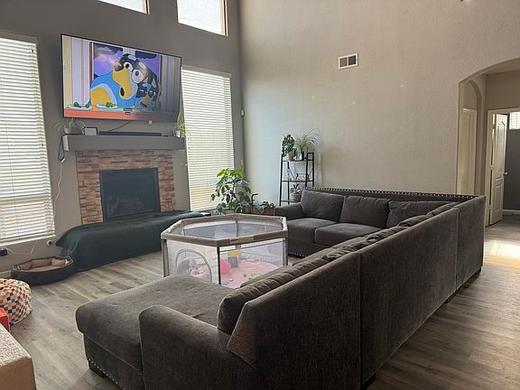 True 5 bedroom (1 Downstairs - 4 Up) in Northern Meadows available before the holidays (early November). Formal Living/Dining, Den with FP, 1/2 bath, spacious kitchen with all appliances and informal dining area all on the ground floor. HUGE primary bedroom upstairs with double door entry and full bath with separate shower. 3 additional bedrooms shared full bath. 3rd living area (loft) w/balcony. Refrigerated Air (2 units) Popular schools, neighborhood parks, close to UNM Regional Hospital, RR City Hall and Events Center, UNM/CNM RR Campuses. Enjoy gardening in the backyard, relaxing under the covered patio or enjoy the hottub. Storage shed. Owner Pays Electric BASED ON 2 Adult occupancy. Applications required. $40/per adult.