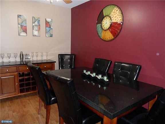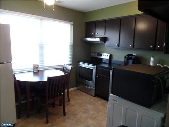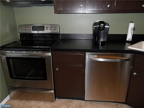 Rare opportunity to own this spacious updated one bedroom first floor condo in desirable Grandville Arms. The eat-in kitchen features a new stainless steel range and dishwasher, along with an all-in-one full size washer dryer unit. The bedroom offers a custom walk-in closet with plenty of room left for that king size bed. Hall entry and formal dining area highlight gleaming hardwood flooring. Freshly painted. Carpets replaced in the living room and bedroom. Rear patio faces wooded area offering plenty of privacy. Heat and hot water are INCLUDED in the monthly association fee! Cable and internet ready. Additional assigned storage area in common basement. Convenient location. Minutes from the Hamilton Train Station, Veteran's Park, shopping, restaurants and several main highways.