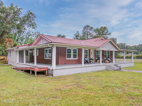 ....Wow - 1 ½ acres with NO HOA. Welcome home to this completely renovated 4 bedroom / 2 full bath brick home with a 1000 sq ft wrap around porch. Very large master bedroom w/250 sq ft private deck attached. Completely new kitchen w/stainless steel appliances, quartz countertops, soft-close shaker cabinets and large pantry. Brand new HVAC unit with completely spray foamed insulated attic. New windows throughout. New electric, new plumbing and new tank-less hot water heater. 2 beautifully designed bathrooms. Brand new well. 24x36 detached garage / workshop for your boat or RV or both. Publix is 2 minutes away; River City Marketplace is 5-10 min and both 295 and 95 are easily accessible.