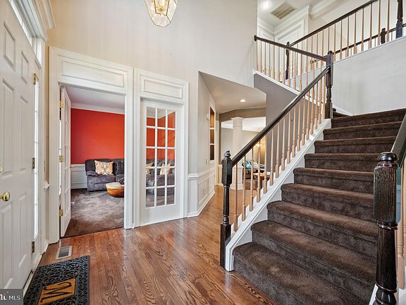 A versatile and open floor plan awaits at 1306 Stoney River Drive in the highly sought after and serene neighborhood of Chestnut Creek. Great curb appeal - beautiful Belgium block paver driveway and the decorative keystone on the front of the house. An inviting entryway and hardwood floors as well as the two story turned staircase set the tone as you enter this lovely home. To the left is a private study/home office with a french door entry and windows that let in tons of natural light. To the right is the formal dining room with exquisite custom millwork. The dentil molding and wainscoting adds to the already inviting atmosphere for formal or casual dining. Beyond the dining room is a wet bar and the entrance to the gourmet island kitchen equipped with premier appliances. The ample cabinetry and built in office area, adds to the kitchen’s organization and functionality. The breakfast room is situated next to the kitchen with an exit to the back deck and offers views of the backyard with windows facing every direction. The great room is stunning with the fireplace serving as the dramatic focal point. It is the perfect space for entertaining or relaxing. An additional living room next to the great room offers plush inlay carpet and a very cozy feel perfect for a movie night. The laundry room is conveniently located on the first floor and features utility sink and closet for extra storage. As you ascend the turned staircase, a second floor landing offers views of the great room with windows stretching from either side of the fireplace. Upstairs you will find four spacious bedrooms including the Primary suite. They are all generously sized with plenty of closet space. The primary suite is stunning with french doors that open into the spacious suite. The tray ceiling and large windows are elegant. The primary ensuite bathroom is equipped with a Kohler jacuzzi tub and a frameless standing glass shower. The primary also has a spacious walk-in closet with a laundry shoot down to the main level laundry room. The finished lower level of the home offers endless possibilities. French doors open to a fifth bedroom or au paire suite with its own bathroom. The backyard has a stunning deck and luscious greenery that is the perfect spot to sit and have your morning coffee or unwind after a long day. Fantastic lot and great setting!