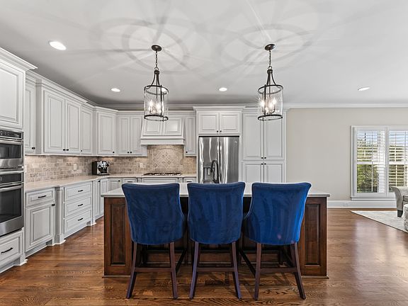 Come and see this beautiful home located on a cul-de-sac on a privacy lot backing to trees! The large screened back porch overlooks the outdoor living area with an outdoor kitchen with built in gas grill, mini fridge, prep area, countertop seating, firepit area, and large patio.(green egg grill does not convey) Hunter Irrigation system w/wifi controller & custom outdoor lighting are featured on this home. Primary bedroom and an additional bedroom are located on the main level with 3 bedrooms & office located on the upper level. Hardwood flooring installed on the main level. All windows have Plantation shutters. Kitchen has custom cabinets, farmhouse sink, gas cooktop & double oven. Large bonus room features custom built-in cabinetry. Upgraded countertops on vanities & custom glass doors are installed in all bathrooms. The garage has epoxy flooring, insulated garage doors, and a storm shelter. There is a water softener & whole house water filter system, tankless water heater, & all house surge protector.
