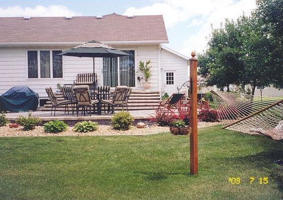 Like new-beautiful ranch in Manvel. Great lot, quiet area. Exlg att garage-26x30 & heated. Raised paver patio. Steel siding, Andersen windows, front porch. Newer flooring, some appliances, paint. 4+ BR, 3BA. Dual heat, C/A. Bsmt just finished in 2006 w/ BR-egress, bed-den-or office (no egress),lg finished laundry rm, toy rm, fm rm w/ bar, bath w/ jetted tub. Central vac, landscaped, brick accent.