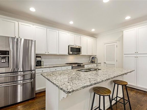 - Kitchen Features: Breakfast Bar, View to Family Room, Stone Counters, Kitchen Island, Pantry Walk-In, Breakfast Room, Solid Surface Counters, Other, Keeping Room, Cabinets White