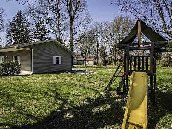 Maintenance free exterior makes this 4 bedroom/2 bath home a must see. Hardwood floors, eat in kitchen and dining room, flex room on 2 levels and a full unfinished basement plus a 2 car detached garage, covered patio, in-ground trampoline, basketball goal, playset, and black top drive setting on over 3/4 acres completes this home that has something for everyone.