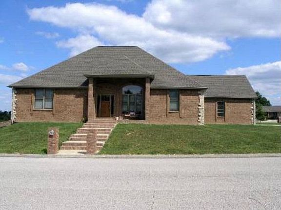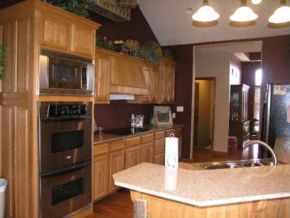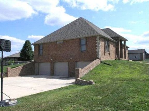 LOVELY-SPACIOUS brick 4BR{could be 5BR}, 3BA contemporary. 2650 sq ft+full basement, partial finished. Comes w/2 car garage main level & 3 car basement garage. Built in 2006-amenities include 9 ft ceilings, all appliances, lots of recessed light, much storage, hardwood floors, storm shelter in basement, Oak kitchen, CH&A+outside wood furn, security system, covered deck in back-CHECK THIS ONE OUT!!