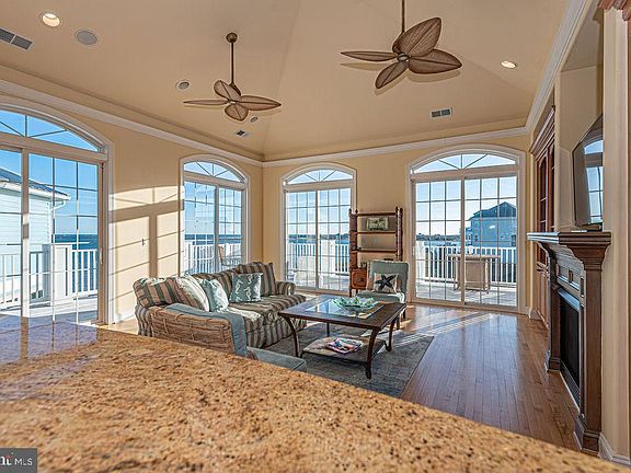 Welcome to Harbor Lights, a private neighborhood where you'll enjoy breathtaking sights of downtown Ocean City, the Ocean City Inlet, and Assateague Island from your three wrap-around decks. Conveniently located near West OC's finest restaurants, shopping, boating, and the beach. This estate-style home offers 4 bedrooms and 4.5 bath, you will have versatility with the first floor level, captains quarters, in-law suite, guest quarters, or media room. The master bedroom suite boasts a fireplace, wet bar, and a wrap-around deck, large walk-in closet/changing room, with luxury bath with garden tub , double vanity and double walk-in shower. The top floor exudes elegance with refinished hardwood floors, a gas fireplace, and epic sliding glass doors leading to a wraparound deck. Open floor plan with large dining room, and gourmet kitchen with center island and breakfast bar. THE EXTERIOR HAS BEEN FRESHLY PAINTED MAY 2023!! This home is equipped with an elevator. Don't miss the chance to start your coastal lifestyle today!