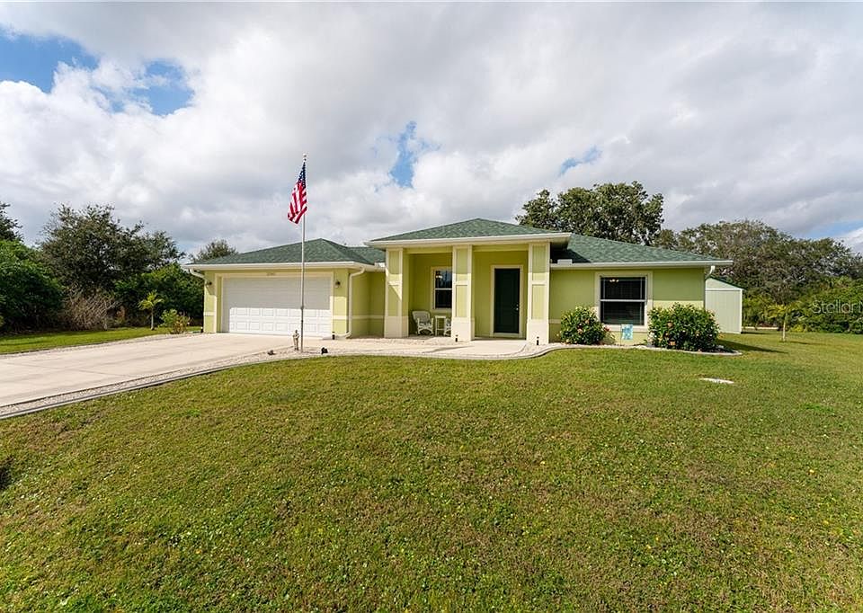 Move-in Ready - Custom home built in 2017 in a nice small neighborhood with only about 30 newer homes. It has 3 bedrooms and 2 bathrooms. The living room, kitchen and dining area have that nice open feeling that we all look for in a Florida home. There is also a pool and all of this on a well landscaped oversized lot. Owner added the pool in 2018 and spared no expense. It has a screened pool cage, salt water system and heater. The home has many custom features. There are tray ceiling, a custom door leading to the pool, mud closet upon entry to remove and store your shoe's and personal belonging, sliding doors to private lanai with portable spa/hot tub that the owners will leave if you wish. The kitchen features granite countertops, wood/raised panel cabinets with soft close and stainless steel kitchen appliances with a French door refrigerator. The master suite has a tray ceiling, two walk-in closets, double sinks with granite countertops, a walk-in shower with ceramic tile accent band, and a private water closet. In the guest bathroom, there is a shower and tub. For added storage, there are pull down steps in the 2 car garage to access the attic. Other features include tile floors throughout, laundry tub in laundry room, window blinds, 5 1/4 in. trim package, recessed lighting and ceiling fans, garage door opener, Low-e double pane windows, fiberglass exterior doors, hurricane shutters, gutters, concrete curbing, and a 10x14 storage barn. Location! location! location!. If you don't know the area some do call it one of the world best kept secrets. Only 15 minutes away from all the fun at Englewood Beach on Manasota key or Boca Grande Island. There is a public boat launch located in South Gulf Cove just minutes down the road that gives access to the Myakka River and on to the Gulf of Mexico. There are 5 golf courses located in Rotonda West, a golfers paradise. A County owned 9 mile blacktop Bicycle and walking/jogging trail is just down the block. Looking for more fun? There is plenty of convenient shopping, dining and entertainment all around. Located close to the airports, only 45 minutes to Punta Gorda airport and a little more then an hour to the Fort Myers airport. Make your appointment today to see this wonderful property. Welcome to paradise!