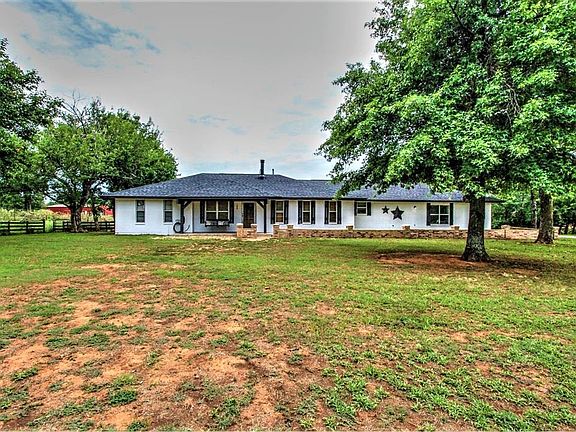Motivated Seller! Price Reduction. You don't want to miss this 4 bedroom, 2 1/2-bathroom home on 4.29 acres in Blanchard School District. Country living, but not far from town. Detached 2 car garage, 30x40 shop with concrete floor, its own meter and 400-amp electric with lean to, and chicken coop. This home has lots of storage, split primary suite, a gas fireplace, new roof 2023, new exterior paint 2023, new exterior light fixtures 2023, driveway fixed/gravel added, and remodeled bathroom with new shower/tub, sink and flooring. The attached garage has been finished out for an extra room with sheetrock and insulation which is currently being used for extra storage, but could be easily converted back to a garage. There is also a room off the kitchen that could be used as an office, other living, playroom, or formal dining area. Seller is willing to negotiate flooring (price or having done before closing). This home is outside of the city limits.