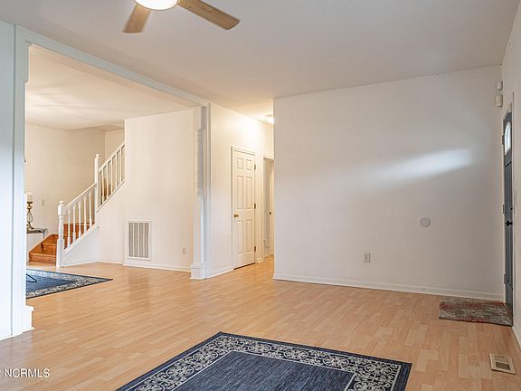 Your front porch dreams have come to life! Sitting on just over 1.5 acres, this home boasts opportunities. White and bright throughout, you have a fresh canvas for your personal touches. The first floor main living areas include the living room with gas fireplace, dining area, spacious kitchen with white cabinets, and laundry room with generator plug. Retire to the owner's suite with walk-in closet, ensuite with dual sinks and ample linen storage. The wooden staircase leads you to the second floor with an expansive bonus room and full bath. The back deck is perfect for soaking in North Carolina nights. Enjoy country living in Scotland County with the convenience of city amenities such as coffee shops, dining, and shops just minutes away. Welcome home!