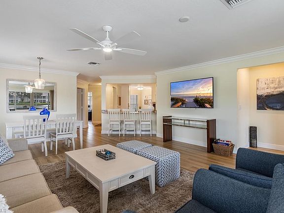 C.17893 - Being sold Turnkey, this stunning Designer Remodel of the sought after, 3 bedroom first floor, Regatta end-unit is now available in Bermuda Greens in Imperial. Fully updated in 2019, this spacious & bright home features luxurious vinyl plank flooring & high-end finishes throughout. The kitchen features upgraded cabinetry, granite counters & backsplash with an extended breakfast counter, all new appliances, a breakfast nook and built-in desk. The spacious master suite has a luxurious King bed with beautiful views and a large ensuite bath with dual sinks, granite counters, his & her closets and separate soaking tub and shower. Split bedrooms provide guests comfort and a gracious space with their own shared updated bath. Enjoy beautiful views and sunsets from the west facing screened lanai, which also has electric storm shutters. Not only is this home special, but the community has very low HOA fees that include insurance, cable, wi-fi, and water. Optional golf and social memberships are available at the renovated Imperial Golf Club. The North Naples location is only minutes to Naples famous beaches, shopping, fine dining, Mercato, Waterside, 5th Ave & MORE.