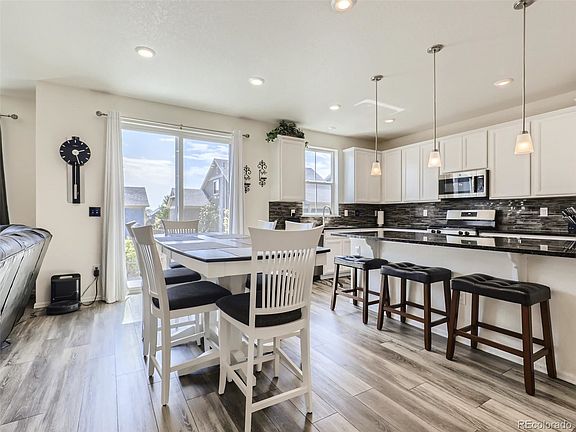 Enjoy all of the upgrades of this better than new Turnberry dream home featuring fresh white cabinets, on-trend granite counters, luxury vinyl plank flooring, stainless appliances, side prep kitchen or family work hub attached to eat-in kitchen. So many high end features including a coffered ceiling in owner's suite, oversized shower retreat, built-in mud space off the ample, fully finished extra large garage - plus a full finished basement with a recreation space, private bedroom and bath. The handsome water conservation inspired rear landscaping is complete with a generous patio and professionally designed for outdoor entertaining. Enjoy many efficient features such as a smart doorbell, smart lock, smart thermostat, even the rooftop solar system combined with Lennar's energy conservation features for exceptionally good energy performance and super low utility bills. This home is conveniently located amidst parks, trails, community pool, schools and major highways - truly a great location!