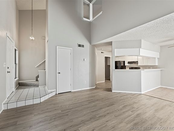 Great starter home or investment property located toward the back of the subdivision on a cul-de-sac. The home is 2 stories with both bedrooms on the upper level. The main level living room boasts vaulted ceilings and a wood burning fireplace. New carpet upstairs and laminate flooring downstairs. Located in the heart of Tulsa, you have easy access to major highways for easy commuting. Don't miss out!