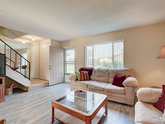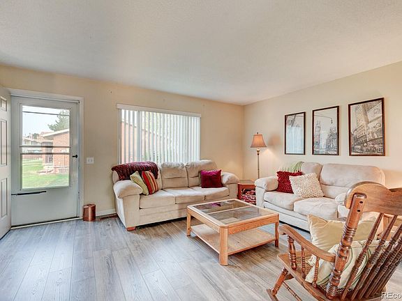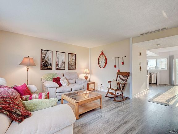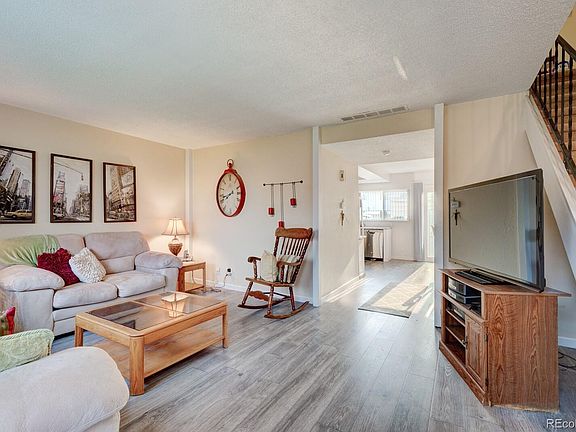 This fantastic 1,080 sqft, 2 bed 1 and 1/2 bath townhome features a main floor with upgraded laminate flooring, completely updated kitchen with granite counter tops, all tile backsplash, BRAND NEW Appliances which include: new refrigerator, oven/ stove, microwave and dishwasher (dishwasher and microwave never been used) During the kitchen remodel recessed lighting and coffered ceiling were also added. Downstairs also includes an updated 1/2 bath AND brand new blinds on the entire main level. Upstairs boasts 2 over-sized bedrooms and a full bathroom! This home is located on a lush green belt with access to a playground and pool right out of your front door! Relax on your private back patio with a large storage shed and NEW fencing. Just beyond your gate is easy access to your two covered parking spots. This townhome is conveniently located near hospitals, shopping, access to I-225 and just 5-minutes to Lite Rail & Public Transit...This townhome is a MUST SEE!!! The following items are included with Townhome purchase IF interested :Kitchen table and chairs, all Living room couches, tables and rocking chair