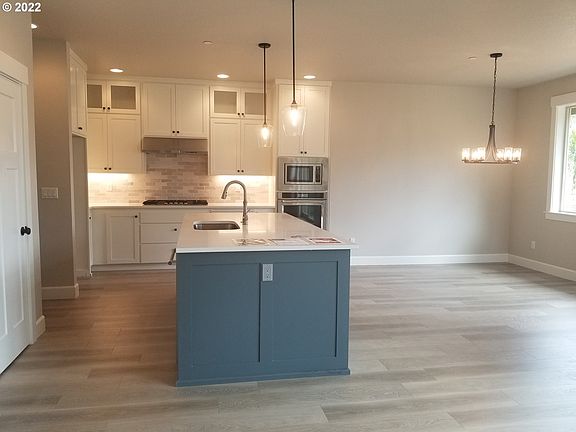 Just Completed! Beautiful new construction Home in Cereghino Farms Milwaukie. ONE LEVEL WITH 3 CAR GARAGE. 3 bedrooms total + den. There is also an optional room that could be a formal dining room or bonus area. 2.5 bathrooms. Stunning kitchen with large island, quartz + pantry. AC included. Back deck and + easy to maintain yard.