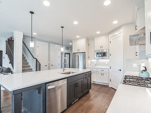 • Features: Dishwasher, Island, Microwave, Pantry, Engineered Hardwood, Free Standing Refrigerator, Quartz
