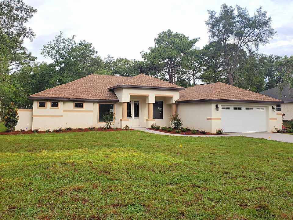 This new home is ready for its new homeowners! This gorgeous 3/2/2 Mediterranean style home has almost 2,000 living sq. ft. The Mangrove model features superb upgrades which include a stainless steel appliance package (excluding refrigerator), granite counter tops, wood cabinets & tile back-splash in kitchen, Closet Maid shelving, upgraded carpet with high density padding, ceramic tile, energy efficient double pane windows, covered lanai, irrigation system, landscaping package, 5,000 sq feet of bahia sod, and more. Pictures are from previous spec homes or staged model for reference of layout, and does not convey actual items included with home. Actual pictures will be updated as home progresses.Estimated completion of July 2020!