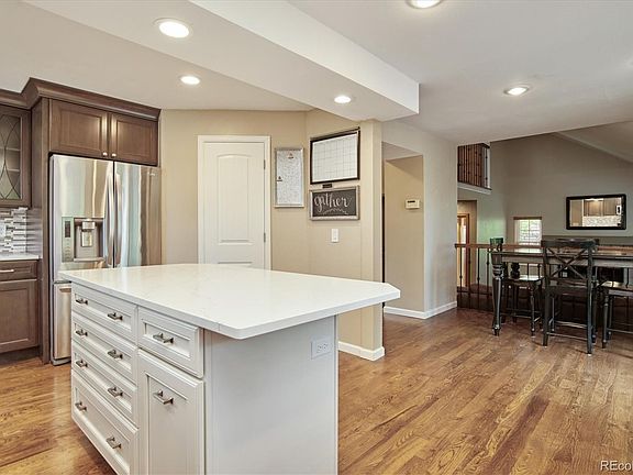 Come see this bright & spacious multi-level home in Arvada's highly desired Meadow Lake neighborhood featuring an open floor plan, vaulted ceilings, hardwood floors throughout, and loads of natural sunlight! A large professional chef's kitchen with white quartz countertops, stainless steel appliances, a farmhouse sink, brown soft close cabinets with pullout shelves, a walk-in pantry with magnet door and motion light, and a large island with generous eating space. Kitchen opens to dining room with slider to back yard. Following the dining room will be a cozy family room with a fireplace and conveniently located bath & laundry room fitting a side-by-side washer & dryer. Full basement could be used as a home gym, office, or a kids playroom. It also offers a wet bar, lots of shelving, and extra space for storage. As you head up the stairs you are greeted by an open hallway leading to two bedrooms and one full bath. As you make your way to the master bedroom you will overlook the family room. Spacious master bedroom has vaulted ceilings, a double bypass closet, window bench seat with beautiful mountain views, and a full big ensuite bathroom. Backyard includes a large trex deck, fully enclosed wood fence, a shed, and easy access to Meadow Lake, Meadowlake Park, and lots of trails and bike paths! 2 car attached garage. Excellent JeffCo schools. Quick access to Boulder, Golden, Olde Town Arvada, and Denver. An unbeatable Arvada location!