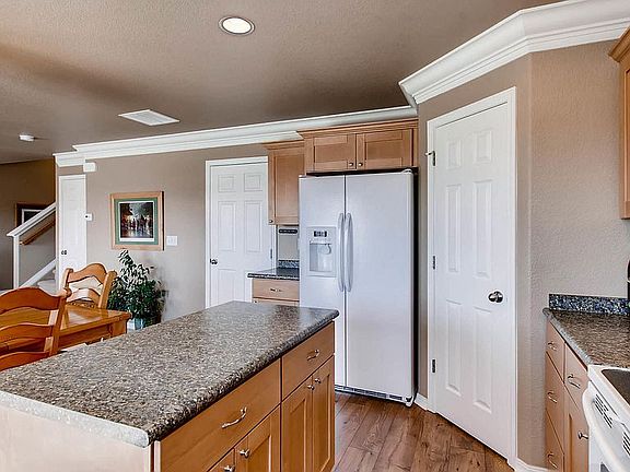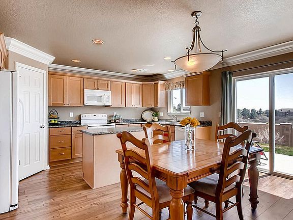 VIEWS, VIEWS, VIEWS!!! Unobstructed breathtaking mountain views! Check out this BEAUTIFUL 2-Story Home at the end of a Quiet Street, Backing to Open Space & in the desirable D20 School District! Like New & Move-In Ready! Features include; New Updated Kitchen Cabinets w/Appliances, Gas Fireplace, New Wood Laminate & Carpet throughout, Crown Molding, Large Master w/Retreat - perfect for an office! Dining room walks out to a large Extended Patio to enjoy those incredible views & gorgeous Colorado evenings!