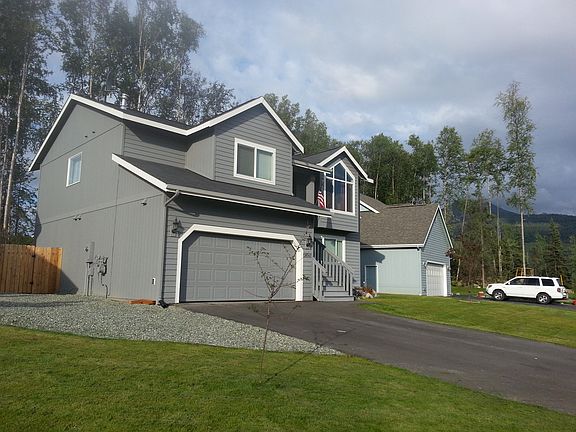 **More Pictures Uploaded Soon!** Beautiful single family home in desirable Powder Ridge neighborhood. With extremely easy access to the highway, its a straight shot into JBER, Anchorage, or north towards the Valley. While Powder Ridge is a neighborhood that is still expanding, this home sits towards the end of a cup-de-sac that is fully developed, so no more construction noise to deal with! The house sits on a large, fully fenced lot, with a gravel pad on the side of the house large enough for an RV or any of your toys. The large windows allow for abundant natural lighting, making the most of those short winter days, and getting that sun light where its needed. They also provide for beautiful views of the mountains and everything Alaska has to offer! With a large, open floor plan designed around maximizing the space available, its bound to meet your needs. There is a family room up-stairs and down, both with large sliding glass doors leading to decks on the back of the house. The kitchen comes with over-sized cabinets to provide ample storage. The rich, dark cabinets feature soft-close doors, crown molding, and a built-in wine rack; along with the subway tile surround, stainless steel appliances, and dark hardwood laminate floors give the whole kitchen a modern feel. The master suite features a double vanity, a large garden soaker tub and separate shower designed for luxury. Off of the bathroom is the walk-in closet with custom shelving for all your storage needs. The upgraded carpeting and pad throughout the rest of the living spaces, along with the gas fireplace in the living room, provide comfort and warmth throughout the house! As the house is just two years old, built in 2012, there is a structural warranty that remains on the house until 2022. Additionally, the house sits in a great school district, especially for the little ones in elementary. Birchwood ABC is a sought-after school in the Anchorage School District as many people attempt to lottery their children in, you will be zoned for it! Contact Devin now to set up a viewing, don't let this beautiful home with amazing location slip by!