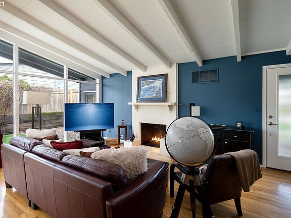 Don't buy a house made of glass? ...we offer this argument. 1955 Mid-Century Modern home with glass wall and exposed beam vaulted ceilings. Lake Oswego Schools! Open floor plan with gas cook island, hardwood floors, fireplace and oh yeah...a glass wall. 3 vaulted bedrooms, complete hall bath remodel, new metal roof and gutters in 2017, new driveway, apron and sidewalks 2020, newer garage doors with openers, vinyl windows and a new glass front door. Central AC, washer and dryer included!