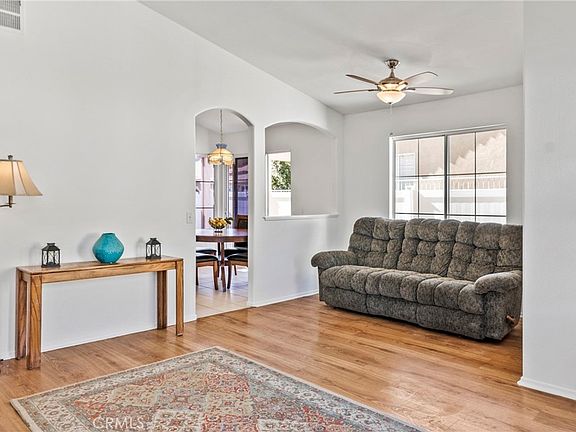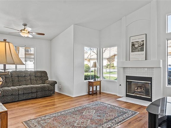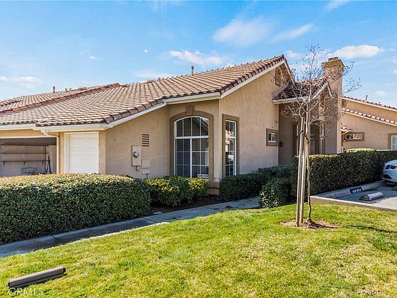 Popular Pebble Beach plan. Located in the very popular 55+ Sun Lakes country club, this single story floor plan offers a large living room with natural lighting, a cozy fireplace high ceilings, opening to the modern kitchen with a breakfast nook and breakfast bar, in addition a large corian countertop for food prep.The very spacious master suite has a walk in closet, direct access to patio area, and allows for privacy from the second bedroom. Attached garage accomodates 2 cars and a separate garage space for the golf cart. plus built in cabinets for storage. Separate laundry room with cabinets and shelves. This unit has guest parking adjacent. The community offers stunning mountain views, two golf courses, three clubhouses, three fitness centers, two restaurants, swimming pool, tennis court, and always planned excursions to nearby casinos, palm springs and shopping at the outlet. If not your thing, theres many social clubs to accomodate your interest, OR to try something new, whether its bocce ball, pickle ball, bowling, dancing. Cable TV and Internet is covered with the association dues. Interior paint just done Feb 20.