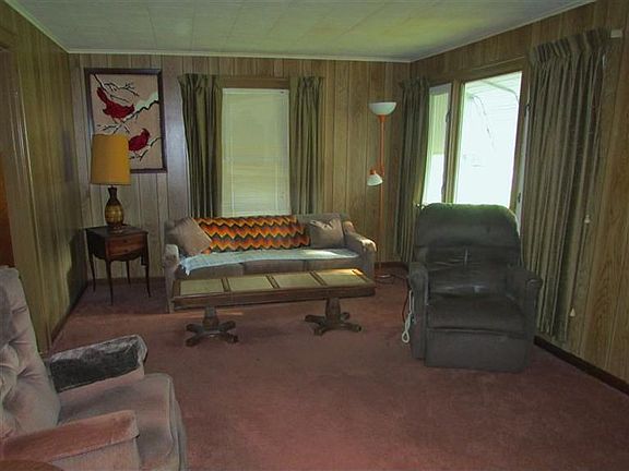 2 BEDROOM HOME IN AN ESTATE! Large corner lot and 2-car garage are features of this vinyl sided bungalow. Home has a large eat-in kitchen, living room, 2 bedrooms, and a bathroom on the main level. The basement was finished at one time. The large screened-in porch overlooks nice sized yard. Please ask your agent about condition and financing on this home.
