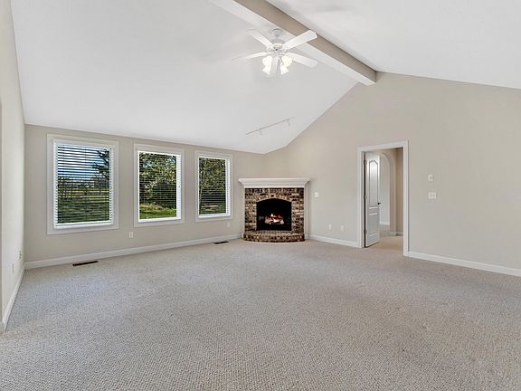 Welcome home to this beautifully maintained villa in desirable Brenton Glens! Bright and airy with abundant natural light, this home features a spacious great room with soaring cathedral ceilings and a cozy corner brick fireplace with gas log. Elegant details throughout include arched doorways, rounded drywall corners, and a stunning stained glass front door. The open-concept kitchen offers ample cabinetry, a pantry, peninsula bar, and all appliances included, flowing into a charming morning room perfect for casual dining. The primary suite is a true retreat with a tray ceiling, large walk-in closet, and a 5-foot step-in shower. A second bedroom also features a cathedral ceiling and generous closet space. Enjoy convenient main-level living with a dedicated laundry room and an oversized garage complete with pull-down stairs leading to a floored attic for extra storage.