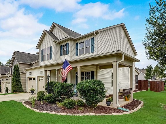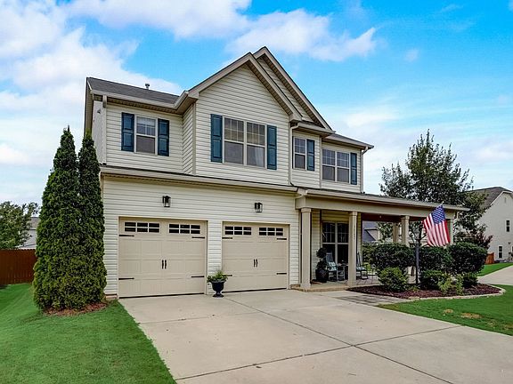 *Price Reduced+$5,000 towards closing* Welcome to this 4-bed, 2.5-bath STUNNER offering the perfect blend of style and comfort. Step onto the inviting wrap-around front porch with a hanging swing; the perfect spot to relax and people watch. Inside, a spacious open floor plan that boasts a grand kitchen with island breakfast bar, granite countertops, and stainless steel appliances. The kitchen opens to a large family room bursting with natural light. Dinner parties are a breeze in the well-appointed formal dining room. Generous-sized bedrooms ensure everyone has their space, while the primary suite features a large walk-in closet, double vanity sinks, soaking garden tub, and separate shower. Step outside to a screened-in porch, perfect for morning coffee or an evening night cap. The fenced backyard provides a secure oasis for outdoor activities. Situated on a corner lot, this home offers both privacy and space. Enjoy the community amenities such as pool, playground, and walking trails all while being a quick commute to Raleigh, Clayton, and Wake Forest!