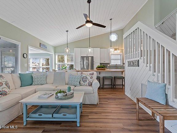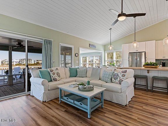 Beautifully updated bayfront home with 4 bdrms, 3 1/2 baths, new 12 ft dining island, new cabinetry, quartz countertops, Samsung SS appliances, and tile backsplash. Recent updates also include addition of half bath, LVP flooring on main floor and fresh interior paint. The 2 main level bedrooms are ensuite and the 2 upstairs bedrooms have a shared bath. The sunroom right off of the kitchen overlooks the bay providing a great place for relaxing, reading, puzzles, or board games. There's a screened porch and large deck where you can enjoy all the coastal nature surrounding this property. Bring your boat or kayaks right up to the floating dock. As a bonus, this home comes fully furnished with all the furniture and wall art.