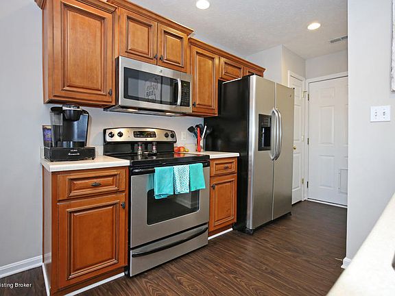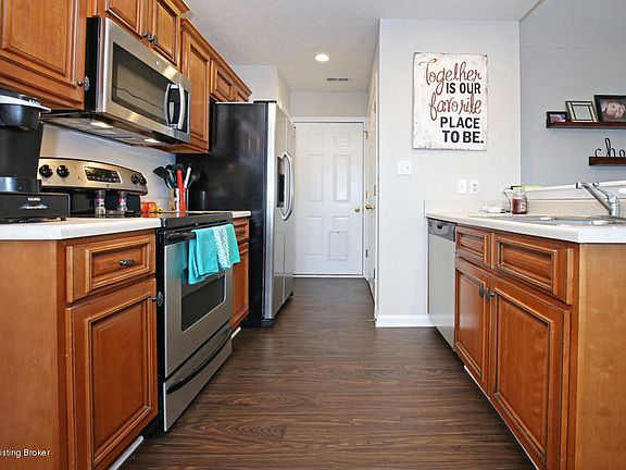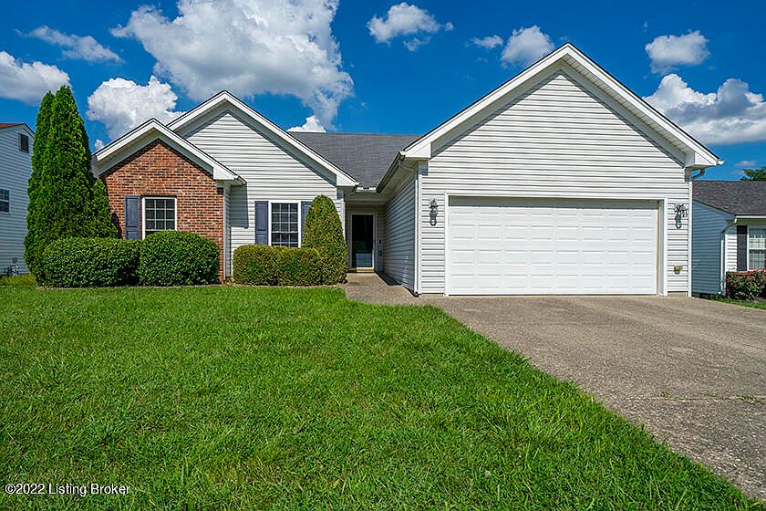 Move in Condition! Welcome home to this beautiful ranch style home in Oldham County. The home features an open floor plan with vaulted ceilings in the Great Room and a gas fireplace with a TV nook. The primary bedroom has a full bathroom and a Walk-in-Closet. Lots of light throughout the house and especially in the Eat-in-Kitchen where the door leads to the outside deck and large spacious fully fenced yard. The kitchen is equipped with newer stainless steel appliances, maple cabinets and a pantry closet. There are two additional bedrooms of nice size and another bathroom. Maintenance free exterior with a concrete driveway. This is a must see!