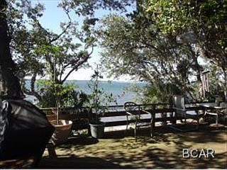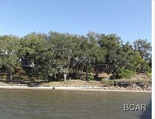 This home sits on a gorgeous bay front bluff approx. 25+ feet above the water with westerly sunset views. There is a nice 300 sq. ft. deck built on the back of the home to enjoy the outdoors and water. There are stairs built going down to the waterfront and the property does have a seawall. The lot also has many large lovely old oak trees. The house has two large front bedrooms with one being the master suite and having double closets, a large bathroom, plenty of storage, spacious laundry room, kitchen appliances - dishwasher, stove, fridge all less than 5 years old, Florida room with stone fireplace, pine ceilings, and brick exterior. The home is older and could use a renovation or you could even tear down and build your dream home here.