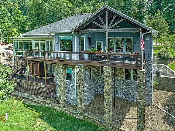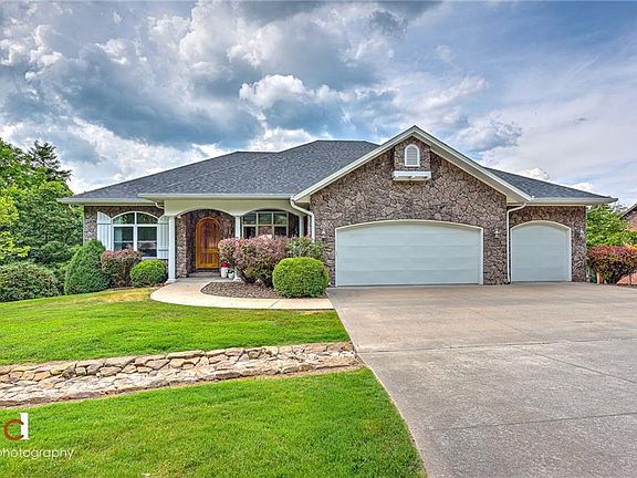 EXCEPTIONAL CUSTOM-BUILT LAKEFRONT SHOWSTOPPER W/ PRIVATE DOCK ON BEAVER LAKE! Enjoy the most beautiful peninsulas on the East side of Beaver Lake in this stunning 2 level home featuring 2 master suites, large chef's kitchen, wet bar, sunroom, 2 living areas, private study w/ custom built-ins, and 2 spacious levels of covered deck space overlooking the lake! Huge walk-out basement features second living area w/ kitchenette, theater room w/ 104" screen & surround sound plus a murphy bed for overflow guests, exercise room, media room, second master and guest bedroom plus climate controlled walk-in storage space (20' x 32'). Huge enclosed outdoor shower on lower deck, new 40 year roof (2015), backup generator w/ 2 500 gallon propane tanks, water softener, new water heaters, new paint & flooring, plantation shutters & more! Easy walk to 4 slip private composite dock w/ swim platform! This fabulous lakefront home is IMMACULATE and can be your vacation or forever home!