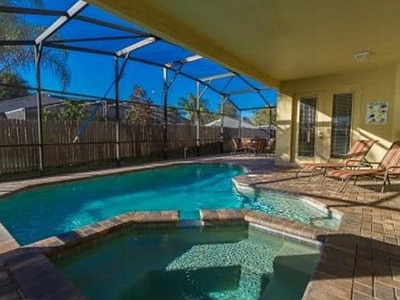 This charming 4 bed / 3 bath property offers a WEST facing private pool & SPA area where you can relax and enjoy the Florida sunshine for most of the day and into the evening. Upgraded brick pavers around the pool area add to the captivating property that this is....and a fence to the rear gives complete privacy. The home comes fully FURNISHED together with a BONUS room upstairs fitted out with an air conditioned GAMESROOM. An electronically opening garage is an added feature. This GATED community is a short distance from the Champions Gate area for supermarket and shops..... and of course the famous golf courses of Florida ! The I4 takes you quickly and easily to Disney. The villa has been a successful rental property for the current owners with bookings to convey.