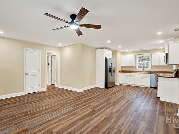 Classic, crisp & clean w retro vibe. Be the first to enjoy this newly renovated mid-century modern ranch on established block in rapidly emerging, conveniently located South Gardens neighborhood. Brick & siding exterior updated w/landscaping & painted in contemporary, neutral palette. Built in 1966, the tastefully transformed 4 bd/2 ba home lives like new. Fresh paint & new ceiling fans thru-out. New LVP flooring & recessed lighting tie together the open-concept living/kitchen/dining space. Custom-built kitchen w brand new SS GE appliances, wood-block countertops, deep stainless sink & loads of cabinet space. Solid wood doors & picture windows. 3 bedrooms feature closets w custom hanging & shelf storage. Huge flex space/bedroom has en suite bath w/sliding barn door & private access, or make it your perfect office, library, whatever your needs. Laundry rm off kitchen. New water heater. Roof & HVAC replaced w/in last 5 yrs. Generous backyard w/possibility for ADU. Block ends in cul-de-sac so no thru traffic. Just blocks from Memorial Hospital and conveniently near shopping, dining, and HAAF. Minutes to Downtown Savannah and Tybee Beach via nearby Truman Parkway. Park in drive, plus free street parking.