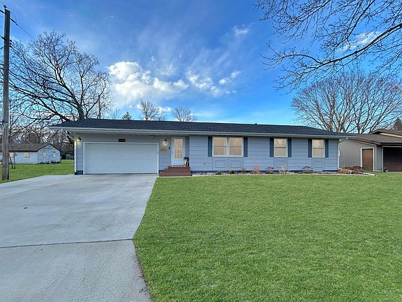 From the concrete curbed landscaping, to the manicured back yard, this ranch style home will appeal to many. The home offers main floor living with 3 bedrooms on the main floor, one which has laundry hooks ups, and a full bathroom. The seamless transition from the living room to dining room to the updated kitchen provides a comfort and ease of conversation. With a finished basement offering a spacious family room a 4th bedroom, 3/4 bathroom and large utility/storage area completes buyers needs. Major updates to the exterior include newer windows, new shingles in 2022, newer exterior doors, newer cement driveway and a yard to entertain or house a trampoline, pool or volley ball net. Location is key being blocks from the junior and senior high schools, businesses, new VA facility and more. For garden and equipment storage there is an 8x10 storage shed, and a 12x16 newer storage shed. Call for a showing today!