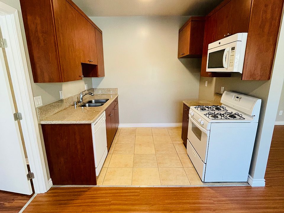 Freshly painted, upper, 2 bed & 2 bath with 2 parking. Common laundry. Wall AC/Heat. Appliances are stove and dishwasher only. Owner pays water. Tenant pays gas and electricity.
