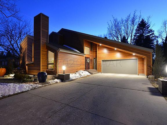 Classic style abounds in this incredible home designed by architect John Rohrman which is located in a quaint North Fargo neighborhood. No detail was spared in this 5100 sq ft contemporary home that blends warmth and beauty. Stunning new cedar siding, elegant architecture and fabulous professional landscaping with programmable lighting create an unforgettable first impression. Exquisite interior elements begin with the high oak wood ceilings and oak floors in both the formal living and dining rooms. An abundance of south windows bring the beauty of natural light into the home and adds to the incredible heat efficiency. Entertain in the elegant dining or casual dining areas whatever the occasion calls for. Three wood burning fireplaces with beautiful brick surrounds add to the home's charm.